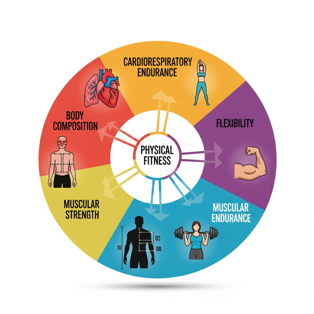 Modern fitness science recognizes five core components that work together to create optimal health: