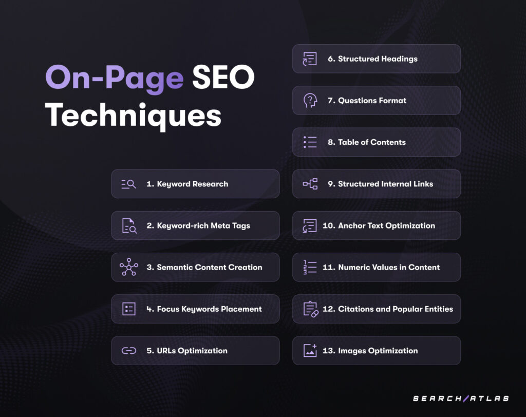 On-Page SEO | Everything on your site: content, keywords, headings, URLs, images |